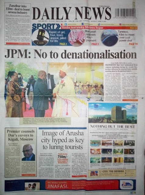 Pata fursa ya kupitia vichwa vya habari vya magazeti ya leo Tanzania, tarehe 09.04.2018.
