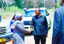 Mhe.Emmanuela Kaganda Mtatifikolo Mkuu wa Wilaya aliyehamishiwa Wilaya ya Babati toka Wilaya ya Arumeru akimpokea na kumkabidhi Ofisi Mhe.Amir Mohommed Mkalipa, Mkuu wa Wilaya mpya wa Wilaya ya Arumer...