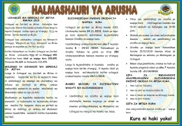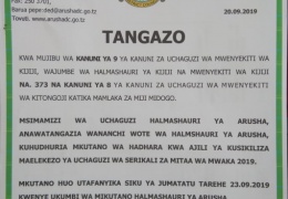 Msimamizi wa Uchaguzi Halmashauri ya Arusha, anawatangazia wanananchi wote, wa Halmashauri ya Arusha kuhudhuria Mkutano wa Hadhara kwa ajili ya kusikiliza Maelekezo ya Uchaguzi wa Serikali za Mitaa mw...