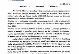 Mkurugenzi Mtendaji halmashauri ya wilaya ya Arusha,Dkt. Wilson Mahera, anawatangazia wananchi wote, kuhudhuria kwenye Mkutano wa Baraza la Madiwani (Full Council), utakaofanyika s...